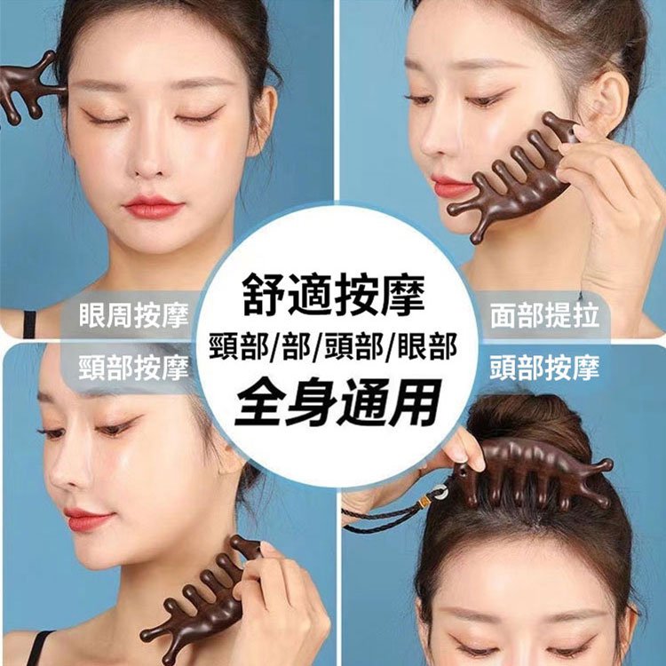 5分鐘前天然檀木美容經絡按摩梳 ◀頭臉按摩◀疏通經絡◀刮痧排毒 按摩穴位促進排毒,面部提拉緊緻 - 【緩解頭痛,按出健康】5入組HK$346
