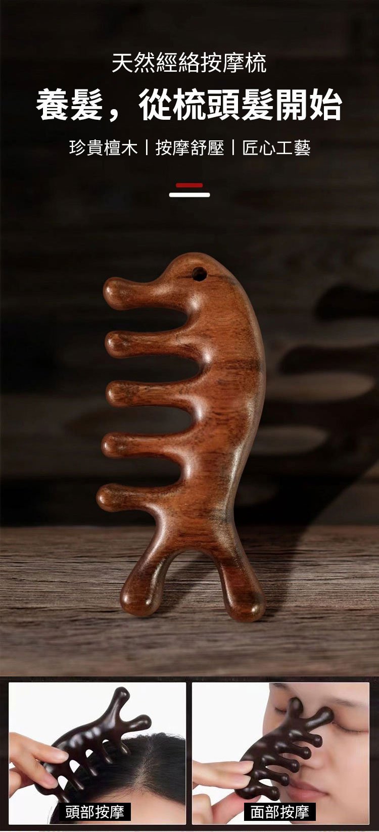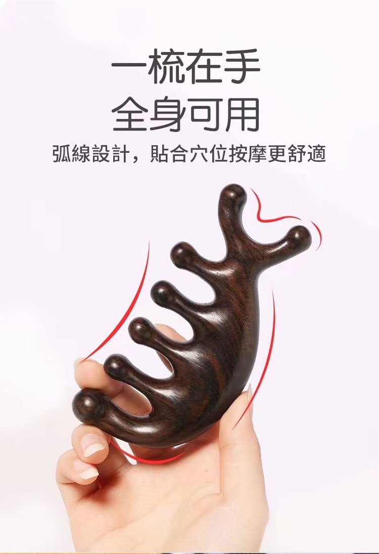 4分鐘前天然檀木美容經絡按摩梳 ◀頭臉按摩◀疏通經絡◀刮痧排毒 按摩穴位促進排毒,面部提拉緊緻 - 【緩解頭痛,按出健康】5入組HK$346